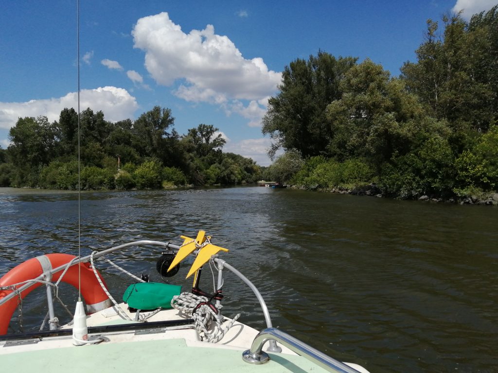 30-35 körüli utazó tempóban, egy megállással (persze a parti bokrokhoz kikötve) ebédszünettel késő délután értünk le Bajára.